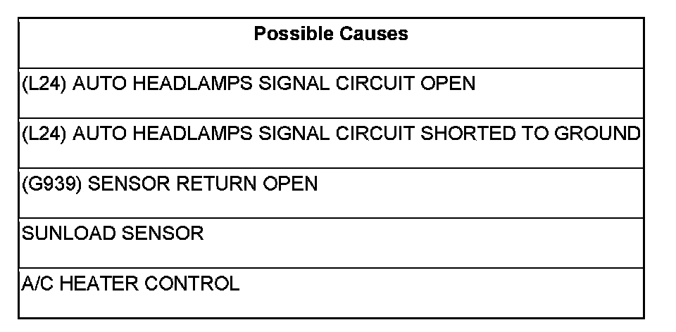 - Repair the (L24) Auto Headlamps Signal circuit for an open.
