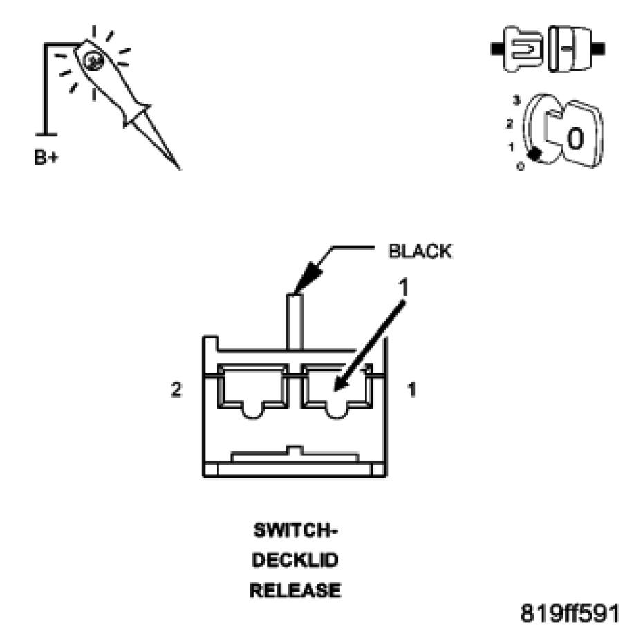 Measure the voltage between Ground and the (P223) Decklid Release Switch sense circuit.