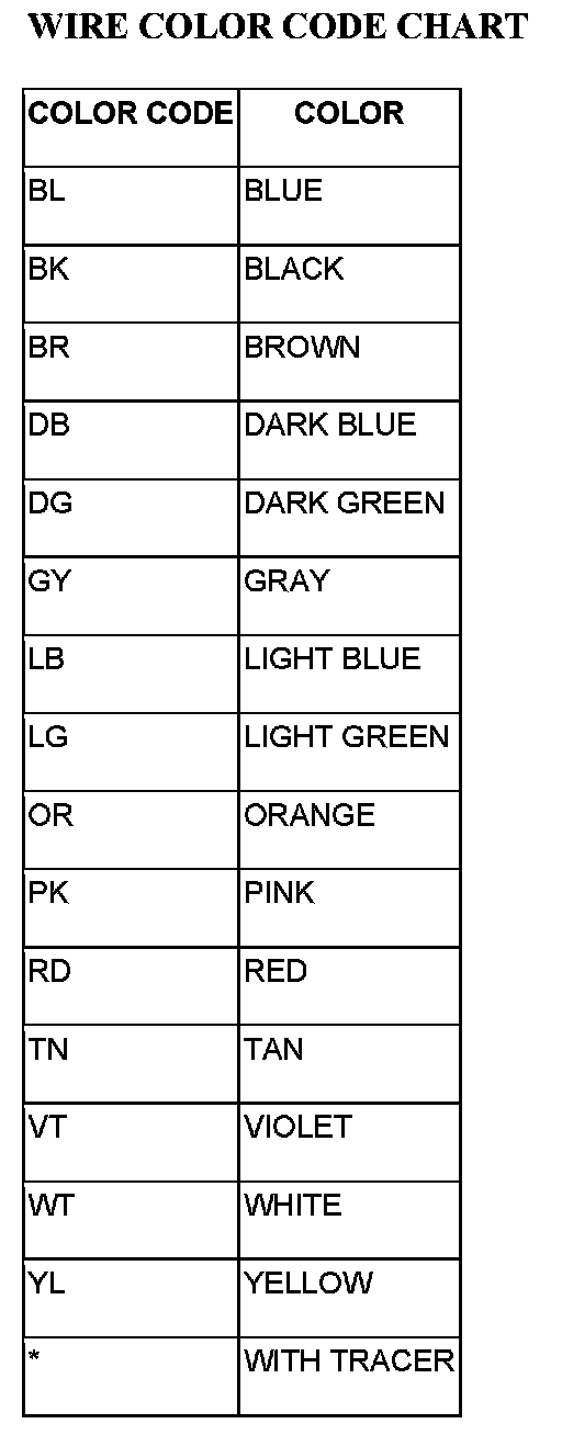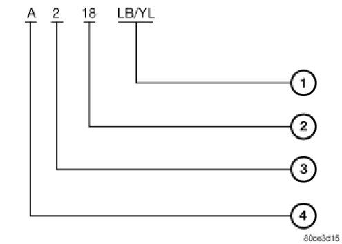 Each wire shown in the diagrams contains a code which identifies the main circuit, part of the main circuit, gage of wire, and color (Figure 1).