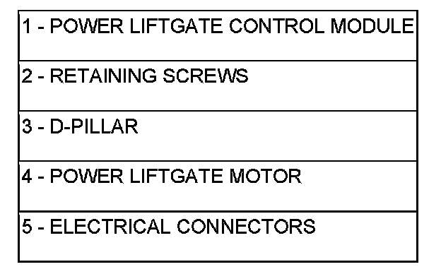 Vehicles equipped with a power liftgate (PLG) utilize a PLG control module. This module is located on the vehicles left side D-pillar just below the motor assembly(Figure 1) and contains a microprocessor, which is used to communicate to the vehicles body control module. The PLG control module receives and monitors logic inputs from all the PLG system switches except for the outside handle switch. This module also contains the software technology to detect liftgate obstructions and stop and/or reverse the door accordingly.