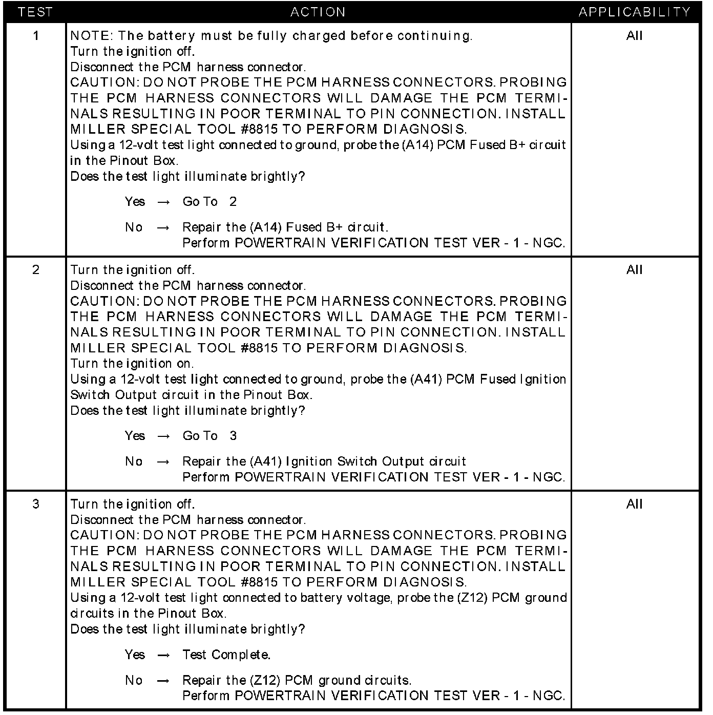 CHECKING PCM POWER AND GROUND CIRCUITS