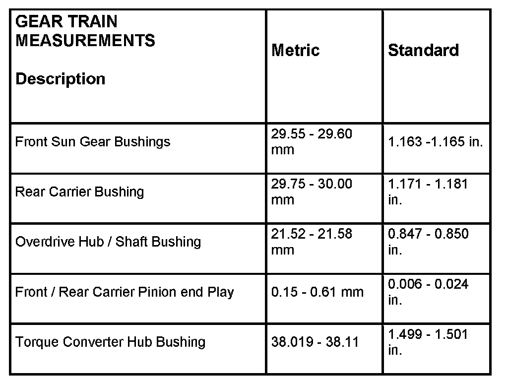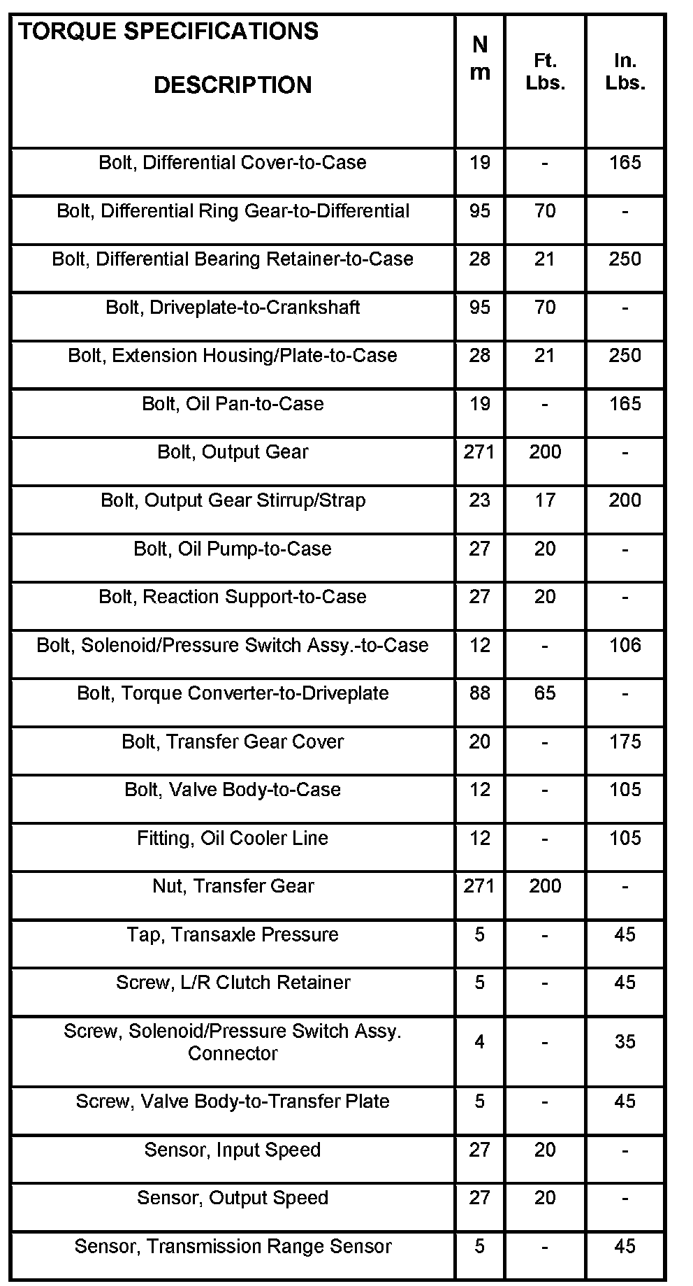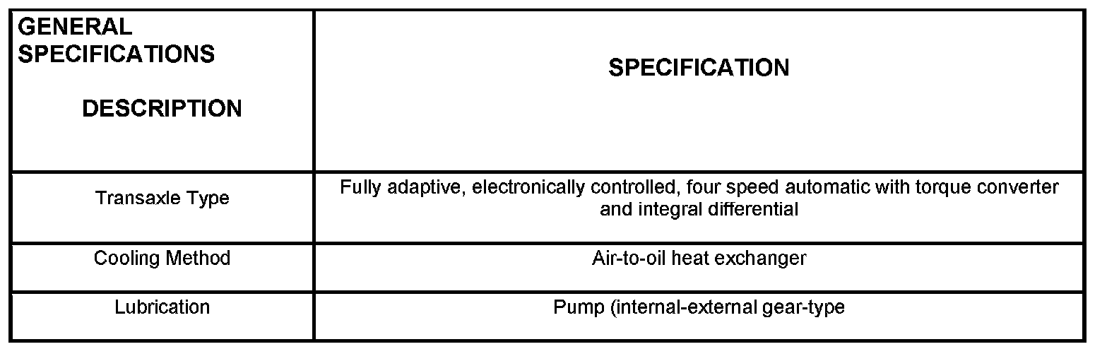 SPECIFICATIONS - 40TE TRANSAXLEGeneral Specifications: