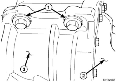 2. Loosely install nuts and bolts (1) in engine mount.