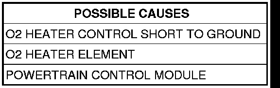 - Set Condition: The PCM detects the O2 Heater voltage is out of acceptable range. Below 0.0926 volt.
