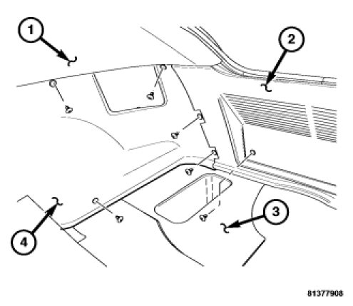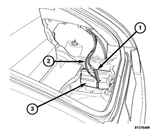 1. Install the central locking pump/security system module (3) into the trunk and connect the air lines (2) and the electrical harness (1).