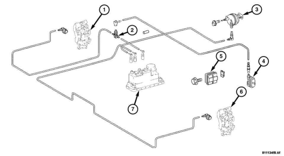 1. Disconnect the pneumatic supply line connected to the Central Locking Pump/Security System Module.