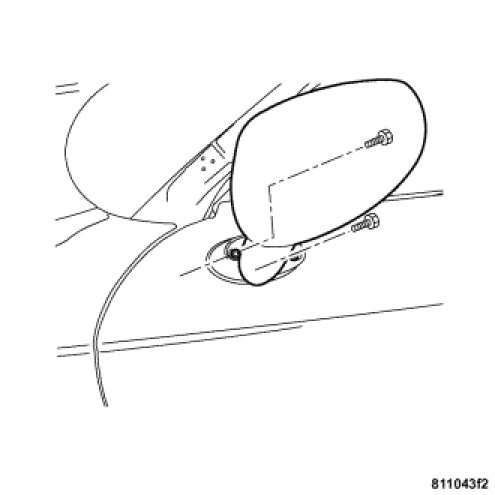 5. Remove the two screws attaching the mirror to the door and remove the mirror.