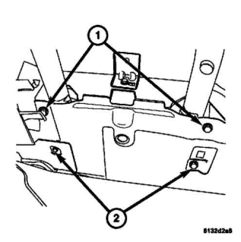1. Install the sports bar then install the sports bar mounting bolts (1, 2).