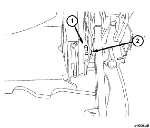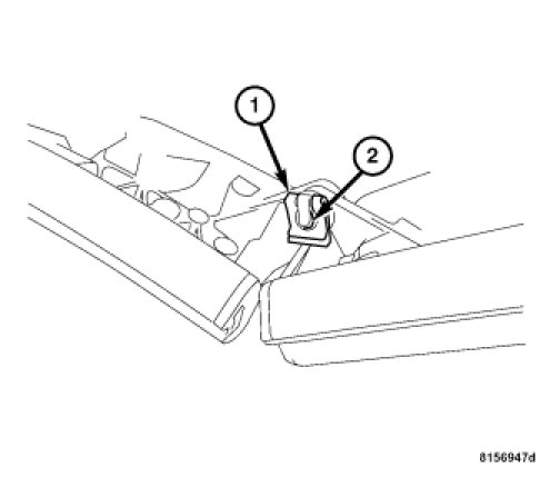 2. Install the 2nd rail middle pin (2) and retaining clip (1).