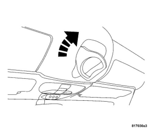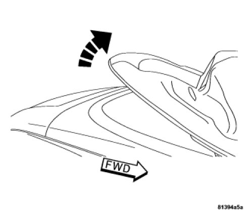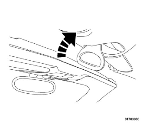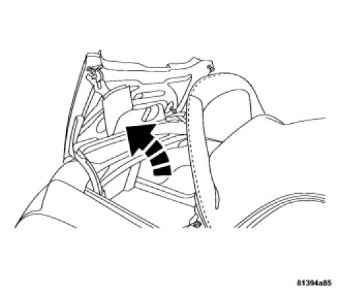3. Push up on the convertible top release handle to create a gap between the header and top of approximately 8 inches (200 mm). Once the top is free, rotate the release handle back to its stored position.