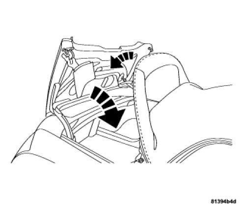 11. Turn the release just past one quarter turn clockwise and pull the convertible top frame carefully down until it meets the windshield header attachment points.
