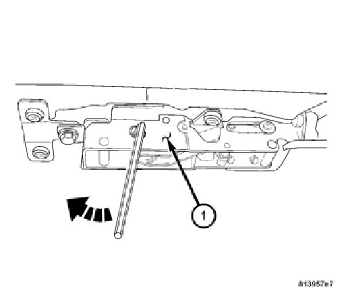 9. Open the decklid and lock the rear bow by inserting an allen wrench into the rear bow latch (1) and turning counterclockwise.