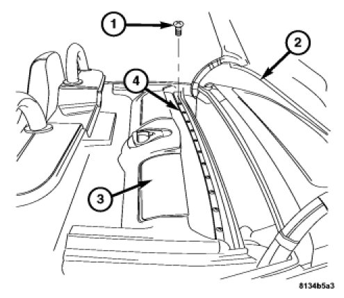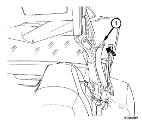 5. Install both rear side weather strips (1) (left side shown, right side similar).