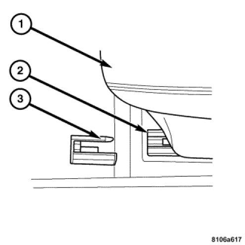 6. Install the bolt (2) at the belt end fitting. Tighten to 35 Nm (26 ft. lbs.).