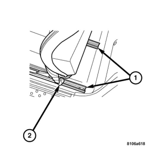 3. Insert the bolts (1) in the bolt holes in the rear of the seat track.