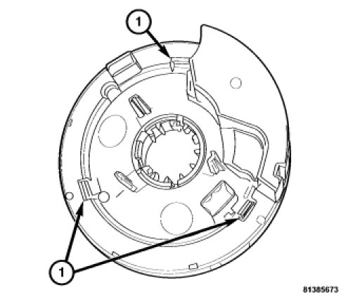 3. Snap the steering angle sensor retaining tabs (1) onto the clockspring.