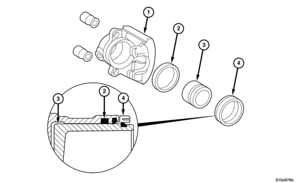 1. Lubricate the caliper piston, piston seals, and piston bore with clean brake fluid.