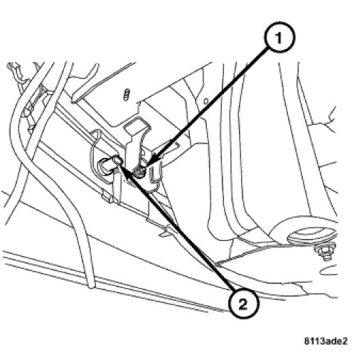 4. Disconnect the ambient air temperature harness connector (2) located next to the front fascia mount (1).