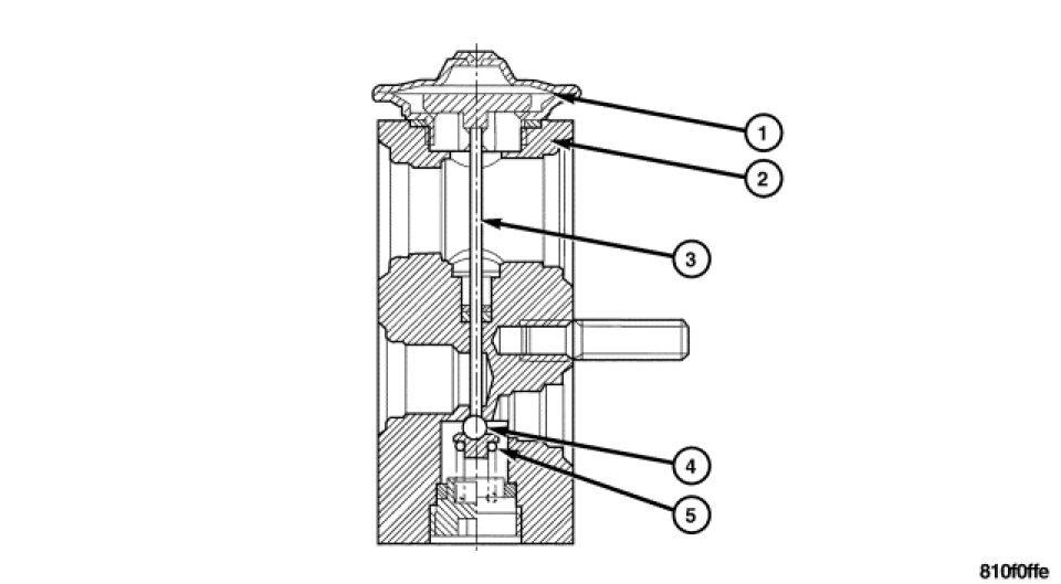 When the A/C compressor is switched on the pressure in the evaporator decreases causing the diaphragm (1) to flex downward in an arch. The tappet (3) follows the motion of the diaphragm and presses the valve ball (4) away from its seat against the force of the spring (5). The refrigerant is sprayed into the evaporator through the open valve. Since the motion of the diaphragm (1) is dependent on the intake pressure as well as the temperature at the evaporator output, only the quantity of refrigerant which can be evaporated optimally is injected.