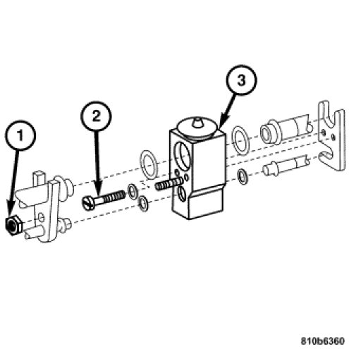 1. Install the expansion valve (3) to the pressure lines.