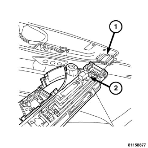 1. Connect the courtesy lamp switch/unit harness connector (1) and align into the headliner opening.