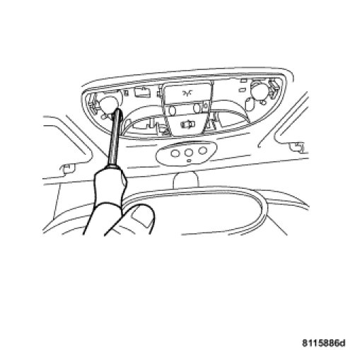 4. Using a trim stick, gently pry and lower the courtesy lamp switch/unit from the headliner opening.
