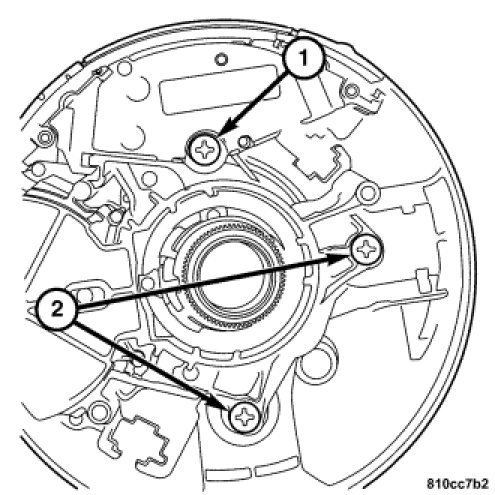 4. Install the screws (2) attaching the multifunction switch to the steering column.
