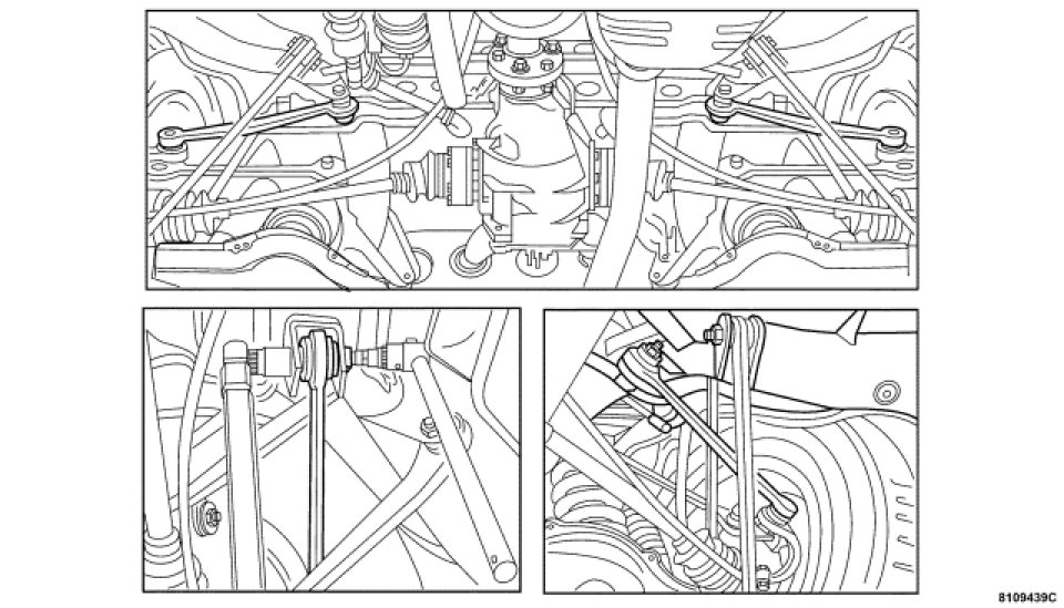 3. Adjust the toe with the cam bolt on the mounting of the left and right tie rod on rear axle carrier.