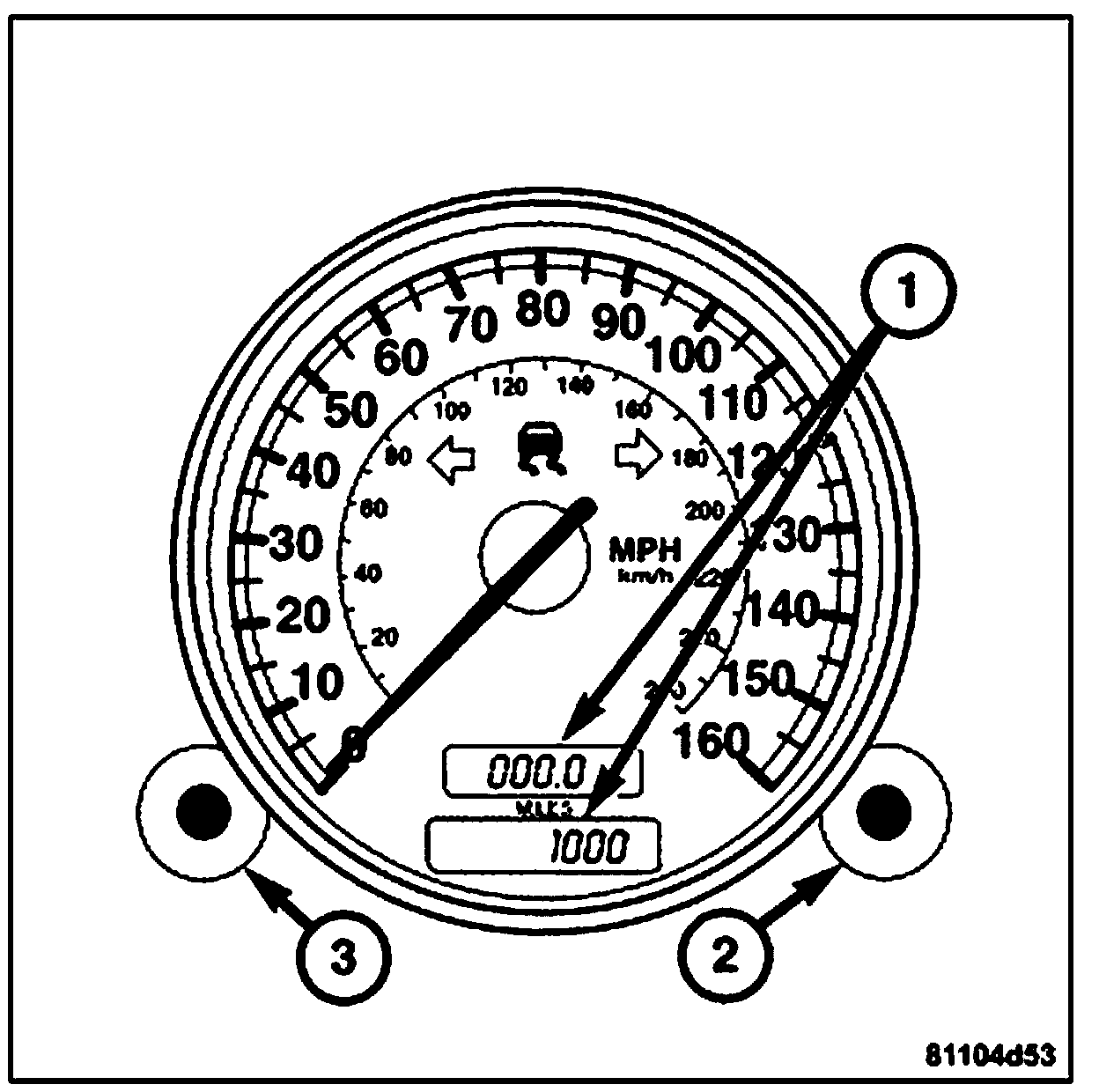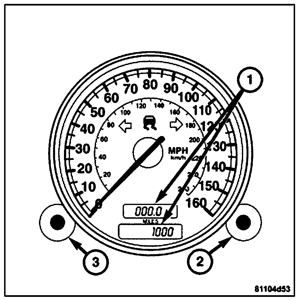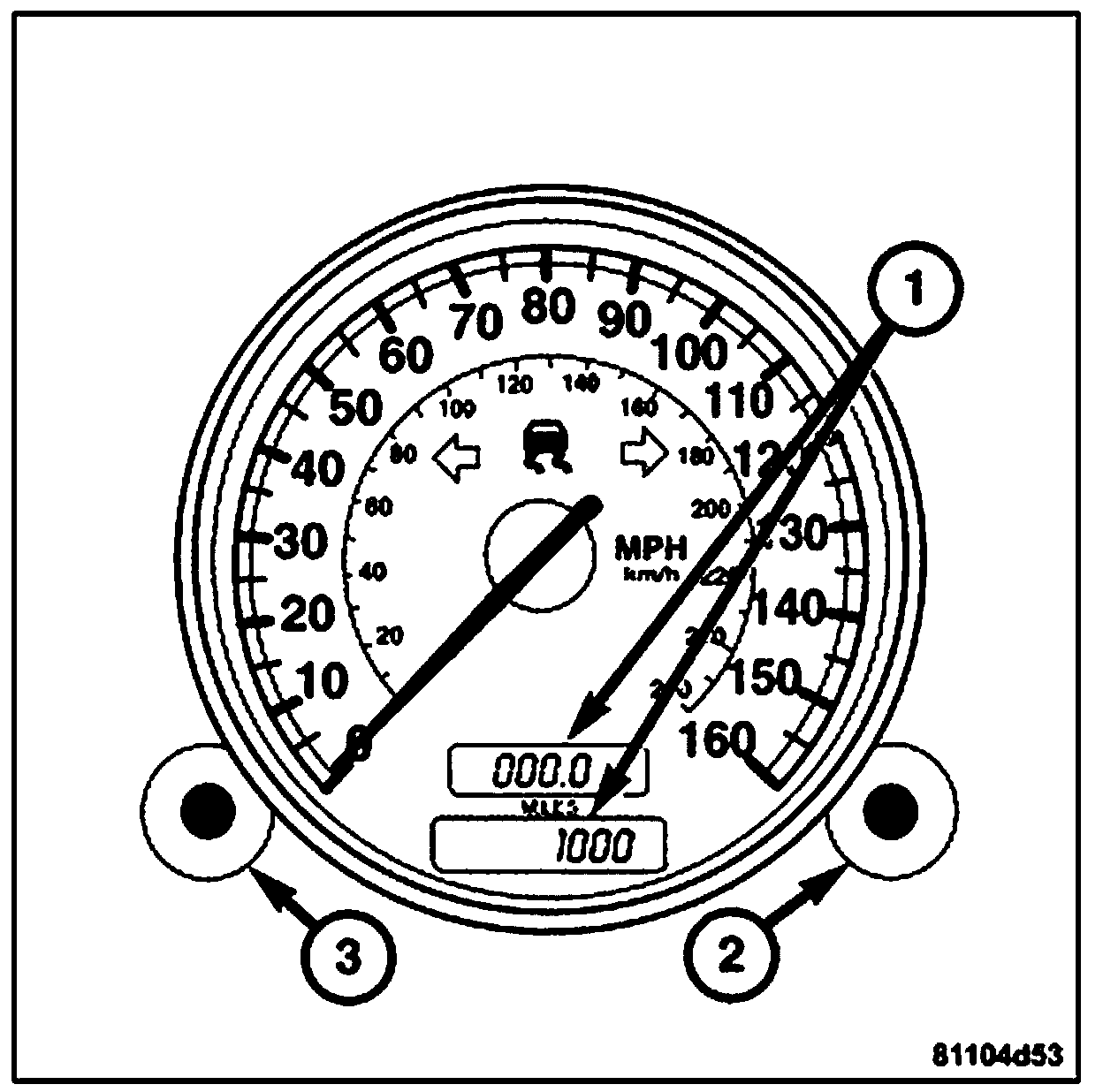 1. Automatically when the odometer (1) is reset to 0 within the first 155 miles. (The FSS maintenance indicator is reset to the values set at the factory).