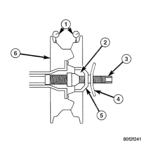 4. Relocate the wheel on the mounting surface of the wheel hub (1), two bolts over from the original position.