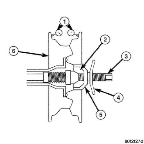 Radial runout (1) is the difference between the high and low points on the wheel. This is measured by using a dial indicator (1) on the inner portion of the wheel (6).