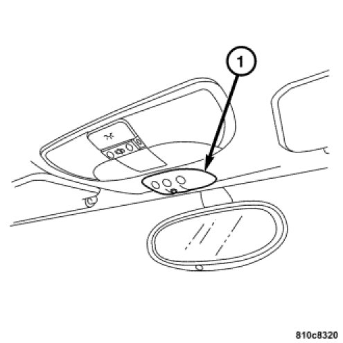 1. Install the Universal Garage Door Opener/Tire Pressure Monitor (1) by snapping it into the headliner.