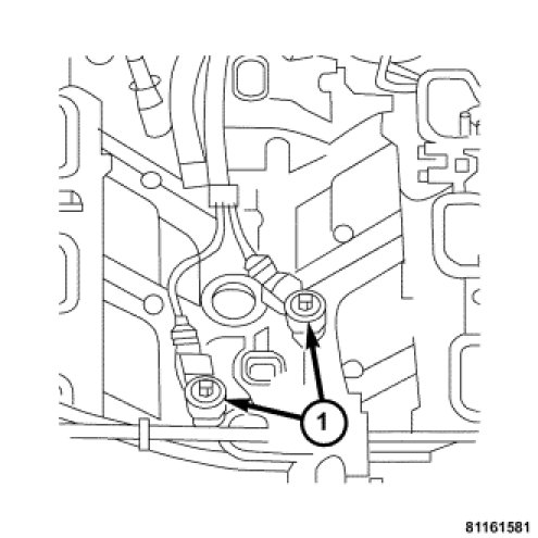 2. Install the knock sensor retaining bolts. Tighten the bolts to 20 Nm (15 ft. lbs.).
