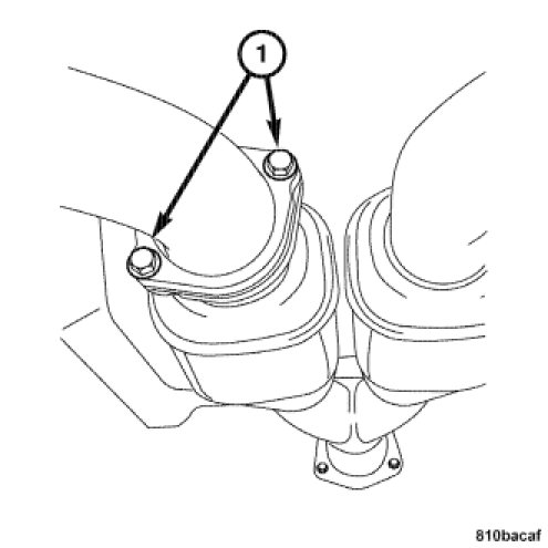 7. Remove the bolts (1) at the right side exhaust pipe flange.