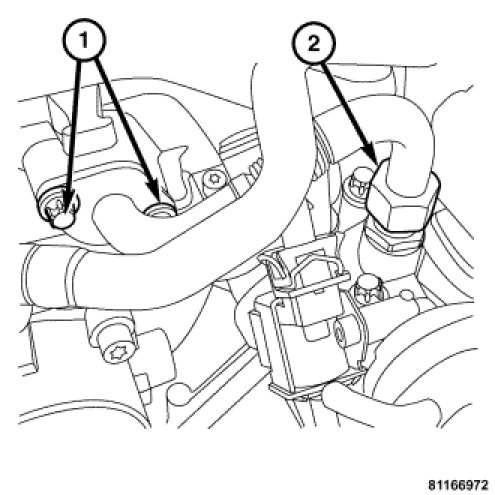 4. Tighten the EGR tube flange nut (2) to 11 Nm (95 in. lbs.).