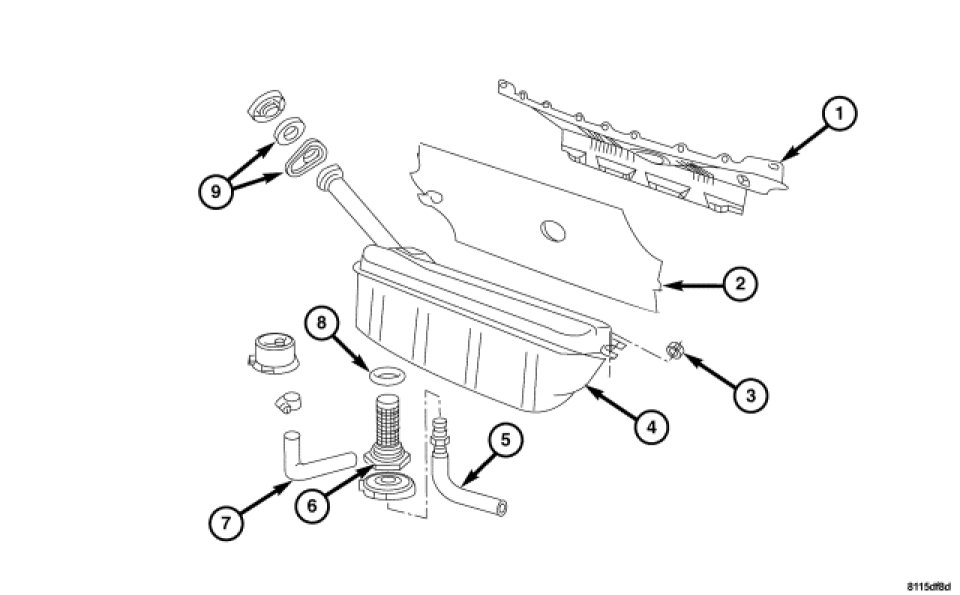 5. Remove the fuel outlet hose (5) at the bottom of the fuel tank.