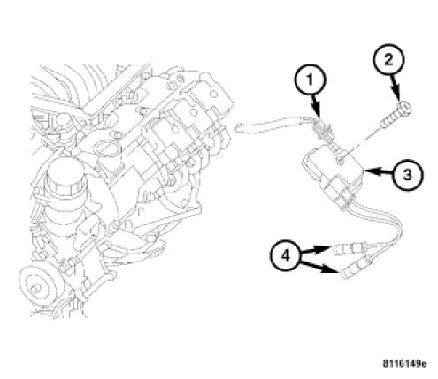 2. Install the ignition coil retaining bolt (2). Tighten the bolt to 8 Nm (71 in. lbs.).