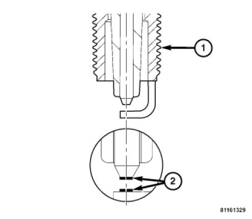 Spark plugs using either a single or double platinum tips have a recommended service life of 100,000 miles for normal driving conditions per schedule A. The spark plugs have a recommended service life of 75,000 miles for severe driving conditions. A thin platinum pad is welded to the center electrode (2) ends. Extreme care must be used to prevent spark plug cross threading, incorrect gapping, and ceramic insulator damage during plug removal and installation.
