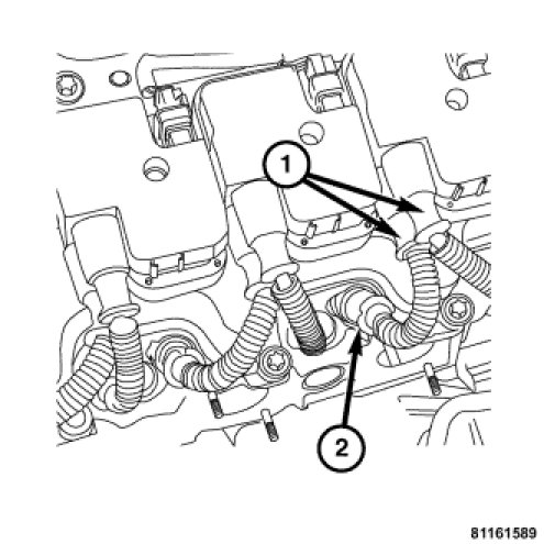 1. Twist and pull the metal clad spark plug cable boots (2) to remove them from the spark plugs.
