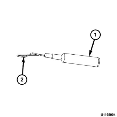 - Probing Tools - These tools are used for probing terminals in connectors. Select the proper size tool from Special Tool Package 6807, and insert the probing end (2) into the terminal being tested. Use the other end of the tool(1) to insert the meter probe.