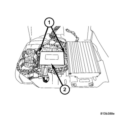 6. Remove the two retaining screws (1) from the base plate, and disconnect the TCM harness connectors.