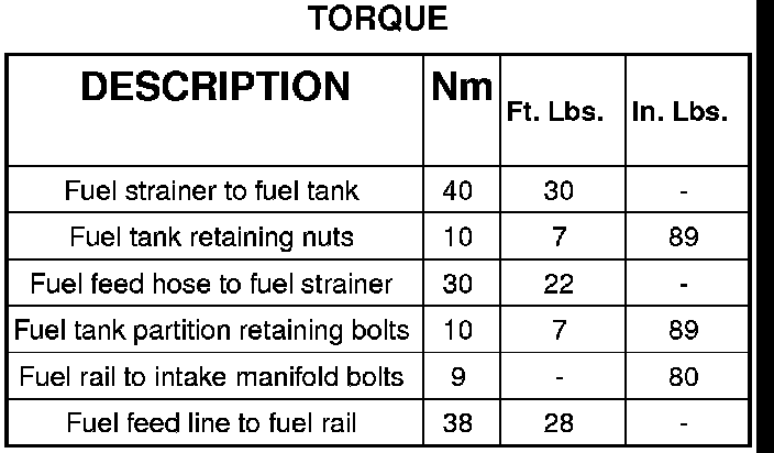 Minimum fuel delivery rate is 1 liter (1.05 qt.) in a maximum of 35 seconds.