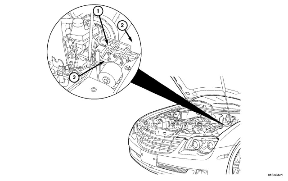 The CAB is a microprocessor-based device which monitors the Antilock Brake System (ABS) during normal braking and controls it when the vehicle is in an ABS stop. The CAB is mounted to the Hydraulic Control Unit (HCU) (3) as part of the Integrated Control Unit (ICU). The CAB uses a 47-way electrical connector on the vehicle wiring harness. The CAB is powered through Fuse 3 (50 amp) located in the engine fuse block.