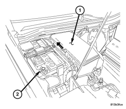 3. Install the plastic control module box cover (1) and slide the clips rearward to lock the cover.