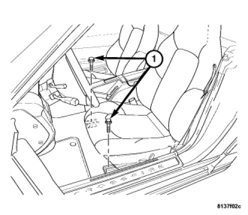 4. Remove the seat track front bolts (1).