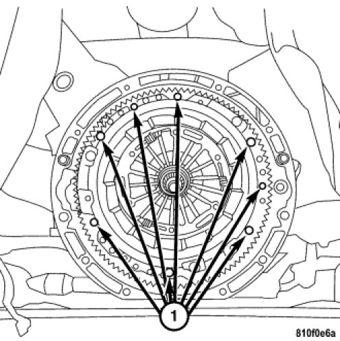Tighten the clutch cover bolts (1) until all bolts are fully seated. Tighten to 25 Nm (18 ft. lbs.).