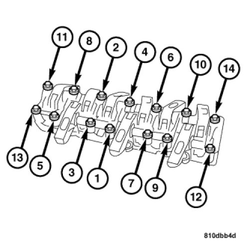 2. Use the tightening sequence chart to tighten the cylinder head bolts.