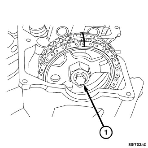 1. Install the camshaft sprockets and bolts (1). Tighten the bolts to 50 Nm (37 ft. lbs.).