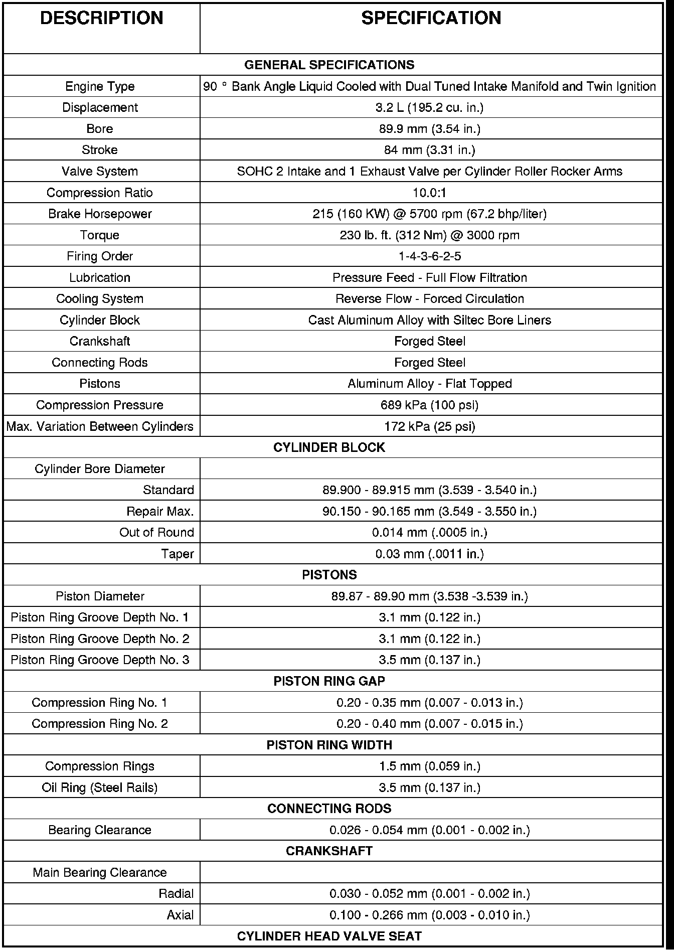 ENGINE SPECIFICATIONSCYLINDER HEAD TORQUE AND SEQUENCE