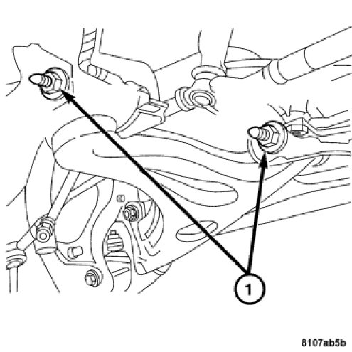 2. Install the two bolts (1) attaching the lower control arm to the frame. Tighten to 120 Nm (88 ft. lbs.).